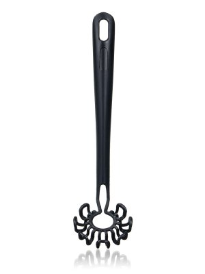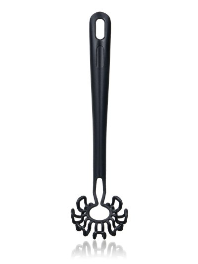 Nylonová kvedlačka HANDY. Praktické očko pro možnost zavěšení. Náčiní se snadno udržuje, lze mýt v myčce na nádobí. Maximální teplota: do 210°C.