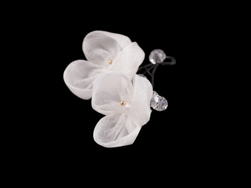 Drátěná větvička s květy je vhodná jako ozdoba oděvů, obuvi, psaníček, karnevalových kostýmů apod. Dále ji využijte k aranžování, výrobě dekorací i doplňků jako jsou brože, ozdoby do vlasů, voničky apod. Květy jsou textilní, působí jemně a křehce, zakomponované broušené kamínky jim dodávají eleganci.