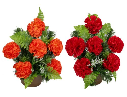Vazba z umělých květin. Aranžmá z umělých květin imitujících chryzantémy je umístěno v květníku se zátěží. Vazba je dozdobena umělými listy a jehličinou. Vhodná sezóna: podzim. Rozměry: průměr květníku 14 cm, výška 32 cm. Barva: mix barev.