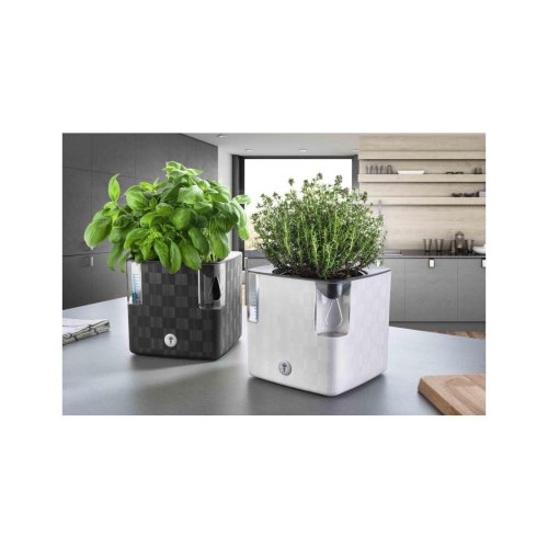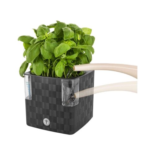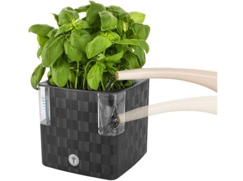 Plastový obal na květník v moderním designu se speciálním Aqua systémem. Je vhodný pro květník o průměru 10 - 12 cm. Není třeba žádná montáž, truhlík je připraven k používání. Šířka: 14 cm, výška: 14 cm, hloubka: 14 cm.