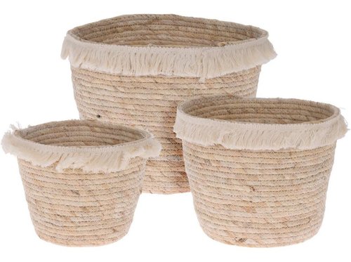 Květináč dekorační sada 3díl. (19 cm, 21,5 cm, 26 cm) přírodní.