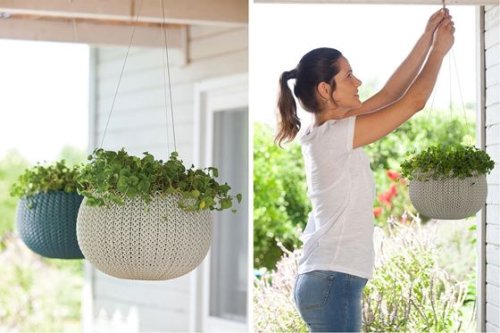 Závěsný květináč Cozy S Dune značky Keter připomíná svým designem přírodní ratanovou vazbu. Skvěle tak doplní jak moderní, tak i tradiční look okolí. Květiny v něm přirozeně vyniknou.