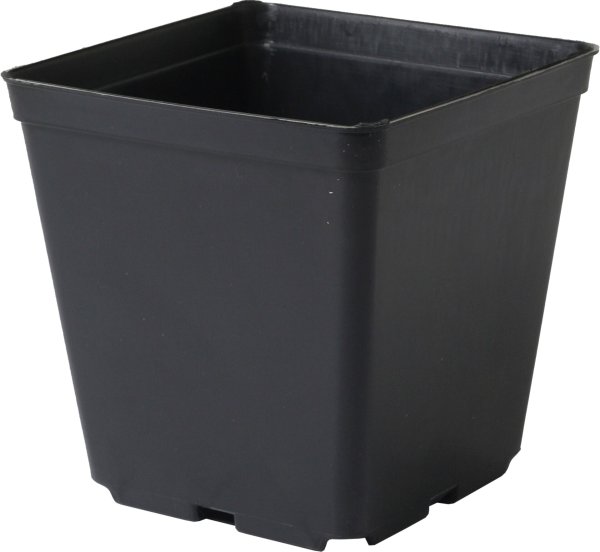 Hranatý plastový černý kontejner pevné kvality je určený pro pěstování rostlin. Pevná kvalita znamená, že drží tvar a je nepromáčknutelný. Používá se na výsadby. Svou cenou, mnoha velikostmi a pevnou kvalitou se řadí mezi běžně dostupné plasty.