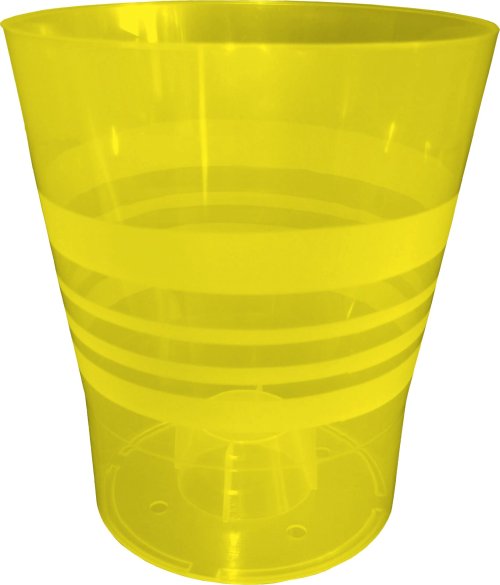Plastový květináč pro orchideje. Zvýšené dno zajišťuje, aby rostlina netrpěla přelitím a přebytkem vody, což je nejčastější příčinou jejich uvadnutí. Lze použít také jako obal, odtokové otvory jsou pouze naznačeny.