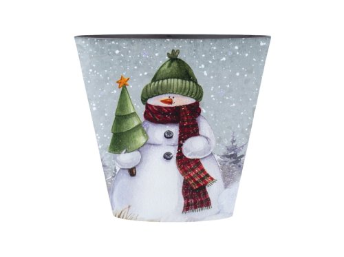 Květináč plastový 210x130x197mm velkýs s vnitřní černou úpravou motiv sněhulák, barevná