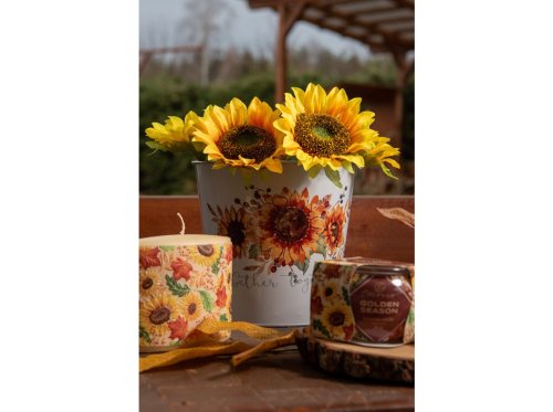 Květináč plechový 185x175mm klasik slunečnice, žlutá, bílá, hnědá