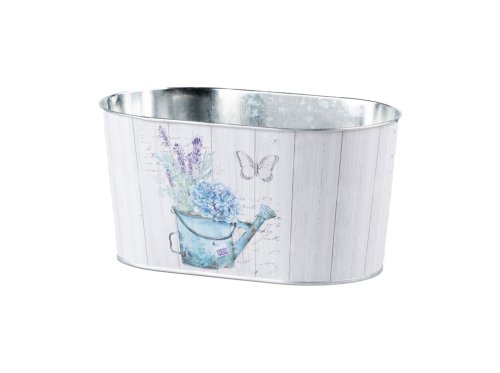 Květináč plechový 225x135x115mm oválný design konev s květinami, barevná