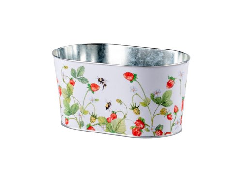 Květináč plechový 225x135x115mm, oválný Jahody, bílá, červená