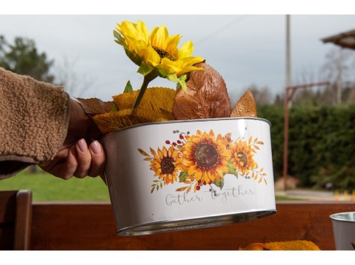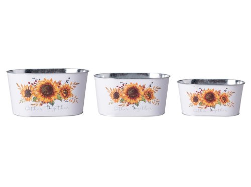 Květináč plechový 3ks set 190x90/225x110/260x135mm oválný slunečnice, bílá, žlutá, hnědá