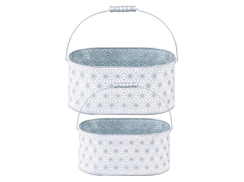 Tato sada dvou oválných plechových květináčů o rozměrech 285 × 145 × 135 mm a 340 × 180 × 155 mm s uchy kombinuje praktické použití a moderní geometrický design. Květináče jsou vhodné pro květiny, bylinky i aranžmá. Barevné provedení v šedé a bílé dodává interiéru stylový a elegantní vzhled. Díky pevným uchům jsou snadno přenosné a lze je využít samostatně nebo jako dekorativní set.