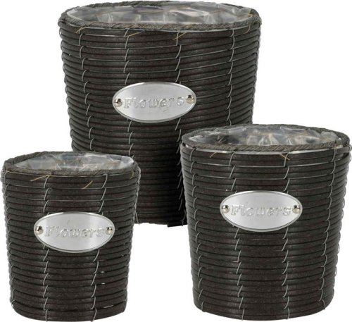 Květináč proutěný sada 3 ks FLOWERS GARDEN 24 / 20 / 18 cm antracit KO-430000640