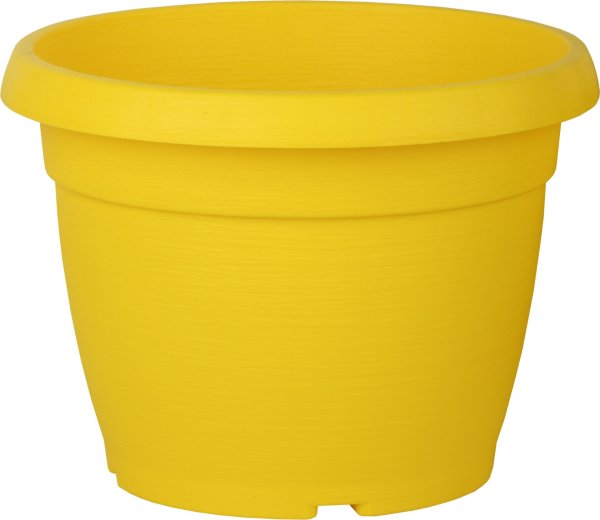 Květináč s dezénem a odtokovými otvory v barvě žluté.