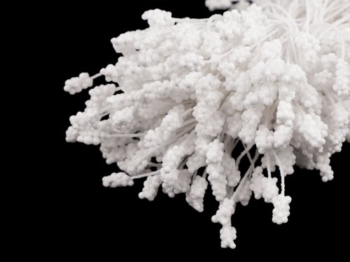 Efektní pestíky jsou vhodné k výrobě květin. Skládají se z drobných kuliček a drží na naškrobené šňůrce. Můžete je zakomponovat do středu umělých květin nebo i do věnců. Využijete je na výrobu květin z foamiranu, krepového papíru, barev na sklo nebo twist artu. Rozměry konců jsou cca 4 x 9 mm.