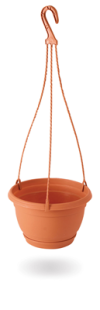 Plastový v půdorysu kulatý závěsný kónický květník s podmiskou. Používá se k zavěšení s vysazenými převislými rostlinami v interiéru i v exteriéru. Rozměry: d. 18 x v. 11,8cm.