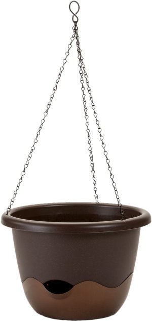 Plastový samozavlažovací květník v moderním dvoubarevném provedení. Součástí je kovový řetízek pro snadné zavěšení, knot, zalévací/přepadový otvor a hladinoměr. Šířka: 25 cm, výška: 16 cm.