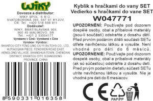 Kyblík s hračkami do vany set. Rozměry kyblíku 15,8x17x17,8 cm. Obsahuje 5 ks vkládacích hraček. 5 ks lodiček 10,4x5,3 cm. 8 ks kelímků.