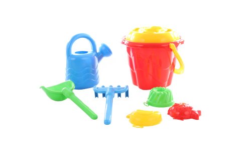 Sada na písek obsahuje kbelík,hrabičky,lopatičku,konvičku,sítko a tři bábovičky. Sada je vyrobena z velmi kvalitního plastu.
