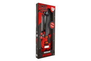 Dětská barevná kytara pro všechny milovníky nejen rockové hudby. Červená kytara s černými plameny a bílými doplňky. Kytara umí nejen hrát, ale hudbu doprovází i světelnými efekty! Funkce kytary: světelné efekty, pět demo nahrávek, 10 melodií a zvukové efekty strun... Velikost kytary: 58 cm Rozměr balení: 24 x 62 x 5,5 cm Vhodné pro děti od 3 let