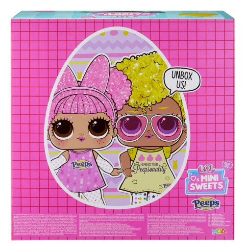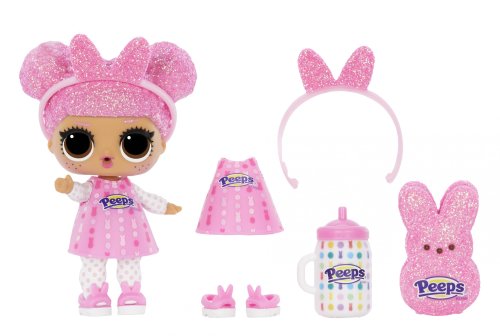 Představujeme limitovanou edici L.O.L. Surprise! Loves Mini Sweets - Peeps! L.O.L. Surprise! se spojilo se značkou cukrovinek Peeps, aby vám přineslo nejdivočejší jaro všech dob. Každá panenka má jedinečný styl se třpytivými detaily, které ladí s oblíbenými cukrovinkami Peeps! Rozbal 7 překvapení a jednu ze dvou panenek Tough Chick nebo Cute Bunny. Když dáš panence napít z lah-vičky, bude plivat vodu.