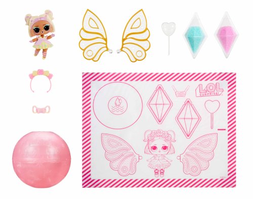 Pomůžeš L.O.L. Surprise! panenkám proměnit se v malé víly? Panenka potřebuje vyrobit křídla v několika jednoduchých krocích. Polož křídla na rovnou podložku.Nasypej barevný vílí prach do křídel (použij svou představivost a kreativitu).Pipetou z balení nakapej vodu do křídel.Počkej, až křídla uschnou, a připni je panence na záda.Obsah balení:?1 panenka1 pár křídel3 různé barvy vílího prachu do křídel1 pipetaoutfit a vílí doplňkyV sérii můžeš sesbírat 8 panenek. Obal slouží jako stojánek pro vystavení víly.