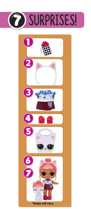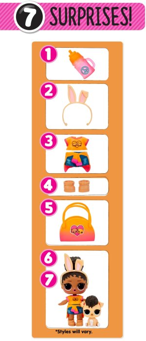 Obsah balení: • 1 exkluzivní L.O.L. panenka a 1 zvířátko • doplňky se zvířecí tematikou • kombinovatelné doplňky • sběratelský plakátek • obal – koule z tvrdého