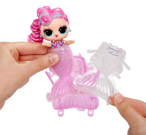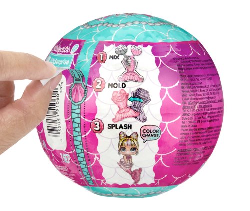 Udělej ze své L.O.L. panenky mořskou pannu! Jednoduše nalej ingredience do formy na ploutev a nech je ztuhnout v připravené vodě s ustalovačem v kouli od panenky. Panenka tak získá barevnou ploutev. Díky této formě můžeš udělat mořskou pannu z jakékoli L.O.L. panenky. Obal slouží jako stojánek pro mořskou pannu. Obsah balení:?• 1 panenka• 1 outfit• 1 forma na ploutev• 2 barvy pro různě barevnou ploutevVelikost L.O.L. panenky: cca 8 cm.