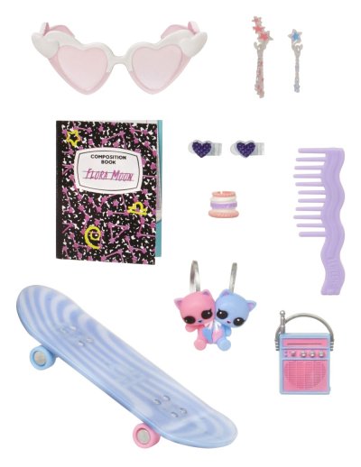 Obsah balení: • 1 panenka Tweens s pohyblivými klouby • 10 různých doplňků včetně nádherných oblečků, bot, kartáče na vlasy, časopisu a stojanu pro panenky