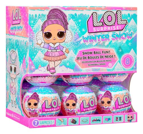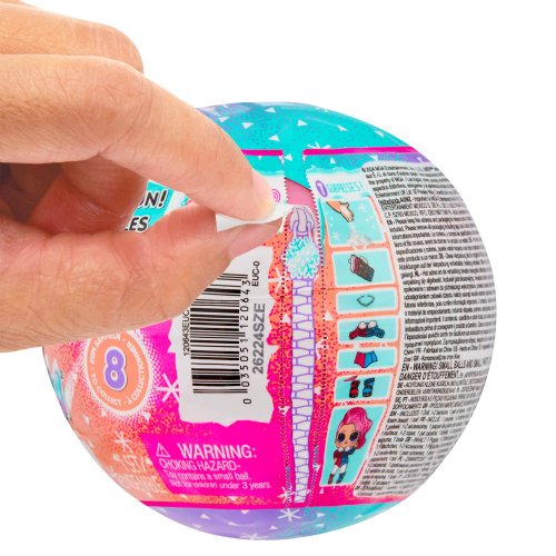 Rozbal jednu z osmi oblíbených L.O.L. panenek v zimním outfitu. Panenky mají ve vlasech třpytky, a pokud dáš panence napít, můžeš sledovat, jak se třpytky ve vlasech hýbou a usazují. Polovina balení obsahuje kinetický písek, ve kterém jsou ukryté doplňky, a v průhledné kouli písek vypadá jako sníh. Obsah balení: 1 panenka, 1 outfit, doplňky. Velikost L.O.L. panenky: cca 8 cm. Věk 3+