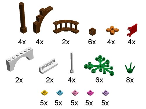 Ideální doplněk k jakékoliv jiné sadě. Umožňuje především zkrášlování okolí staveb, ale i jiných výtvorů. Neobsahuje návod, baleno v průhledném plastovém pytlíku. Hlavní vlastnosti: architektonické doplňky, květinová výzdoba70 dílků Certifikát „Bezpečné hračky“ je vydáván Institutem pro testování a certifikaci, a. s. (ITC), nezávislou společností s mezinárodní působností, která poskytuje odborné služby v oblasti zkoušení a certifikace hraček více než 15 let. Označuje výrobky skutečně pečlivě posouzené z hlediska všech možných rizik. Jeho vydání je podmíněno pravidlenými kontrolami dodavatelů, procesu výroby a zkouškami výrobků, které zaručují jistotu trvalého souladu s požadavky na bezpečnost a kvalitu.