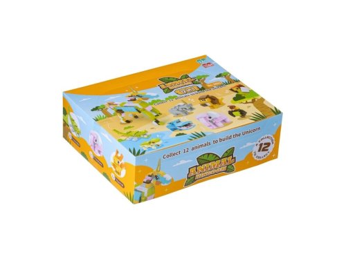 Kolekce 12 ks zvířátek. Poskládejte si 12 malých zvířátek anebo si z nich rovnou složte velkého jednorožce. Pro jeho složení musí být k dispozici všechny kostičky z boxu. Z důvodu velkého množství specifických dílků je stavebnice vhodná spíše pro větší děti. Každé zvířátko je baleno v samostatné papírové krabici. Kostičky jsou v plastikovém obalu s návodem. Na návodu je vždy na jedné straně návod ke složení zvířátka z krabičky a na druhé straně je pak část návodu pro složení jednorožce. Hlavní vlastnosti: kombinováním sady malých zvířátek lze sestavit velký model jednorožceideální jako box pro pravidelné odměňování dětí