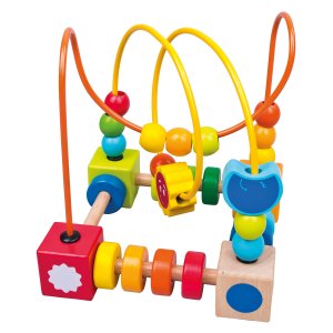 Barevný labyrint s korálky, který zabaví děti již od těch nejmenších. Posouvání korálků z jedné strany na druhou je dobrým pomocníkem při procvičování jemné motoriky a citu v rukou. Hra, při které se děti učí poznávat posloupnost, protiklady (nahoře/dole, doprava/doleva, malý/velký).