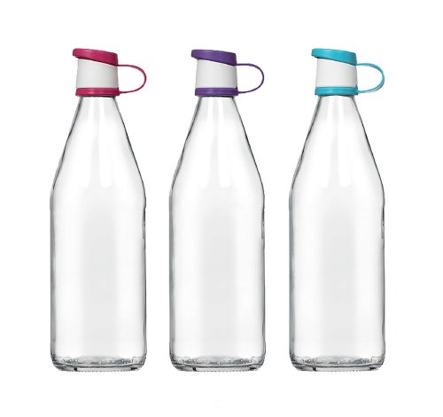objem: 1 l materiál: skleněná láhev, plastové víčko víčko mix barev: tmavě růžová, fialová, tyrkysová