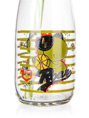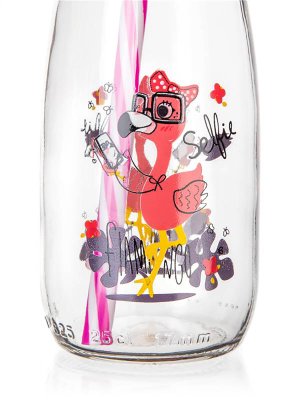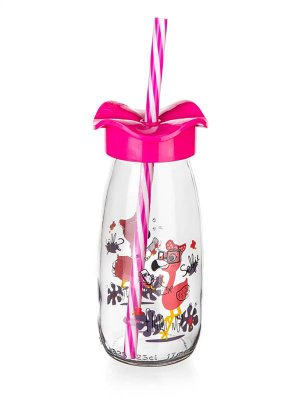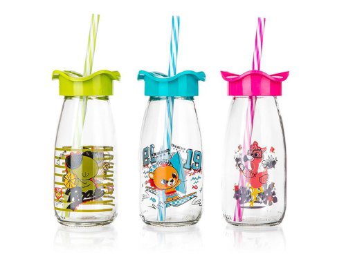 Láhev 250 ml, s víčkem a brčkem, sklo / PH mix dekorů.