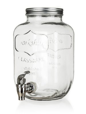 Skleněný zásobník na nápoje BRISA, o objemu 4 l, slouží k servírování osvěžujících nápojů na oslavách a letních párty. Zásobník je vyroben z kvalitního čirého skla a je opatřen praktickým plastovým kohoutkem pro dávkování nápojů. Zásobník je určený k podávání pouze chladných a svěžích letních nápojů typu domácí limonáda, ovocný džus, ledový čaj a podobně. Široké hrdlo umožňuje do nádoby pohodlně vkládat led nebo kousky ovoce.