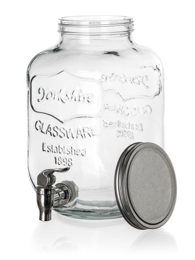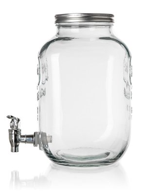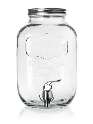 Skleněný zásobník na nápoje o objemu 5,2 l, slouží k servírování osvěžujících nápojů na oslavách a letních párty. Zásobník je vyroben z kvalitního čirého skla a je opatřen praktickým plastovým kohoutkem pro dávkování nápojů. Zásobník je určený k podávání pouze chladných a svěžích letních nápojů typu domácí limonáda, ovocný džus, ledový čaj a podobně. Široké hrdlo umožňuje do nádoby pohodlně vkládat led nebo kousky ovoce.