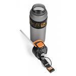 Láhev na pití s dvojitým víkem, zdravotně nezávadný BPA free materiál, ultra bezpečná pojistka proti samovolnému otevření, dvojí způsob pití – brčkem i z hrdla.