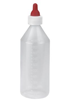 Krmná láhev pro jehňata a kůzlata s cucákem.plastová láhev včetně cucákus očkem pro její zavěšeníobsah 1000 ml
