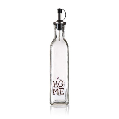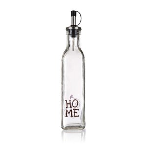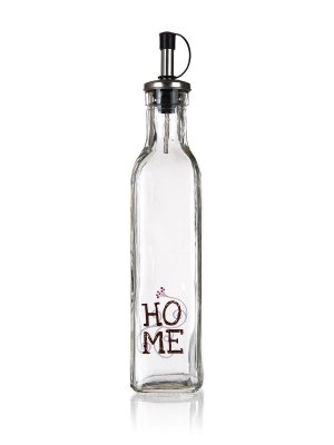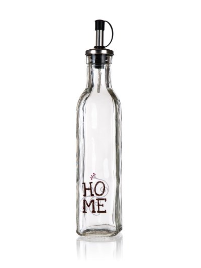 Láhev na olej 250 ml HOME, skleněná. objem: 250 ml Láhev na olej s dekorem HOME hranatého tvaru, vyrobená ze skla, je ideální pomocník do kuchyně.
