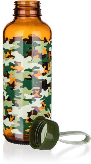 Láhev na pití 450 ml, MANON, sklo / PH HN, camouflage, s poutkem.