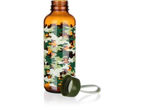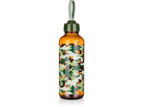 Skleněná láhev MANON, camouflage. Láhev je vybavena poutkem pro snadné přenášení. Není vhodná pro horké nápoje.