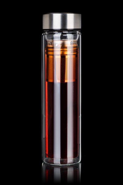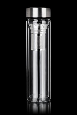 Láhev na pití 500 ml, dvoustěnná, DOBLO, se sítkem, nerez / sklo.