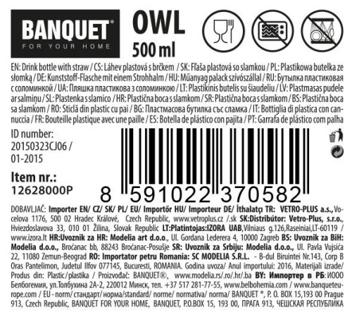 Láhev plastová OWLS Pink 500 ml je vyrobena z průhledného plastu s dekorem sovy. Láhev využijete do školy i na výlety do přírody.