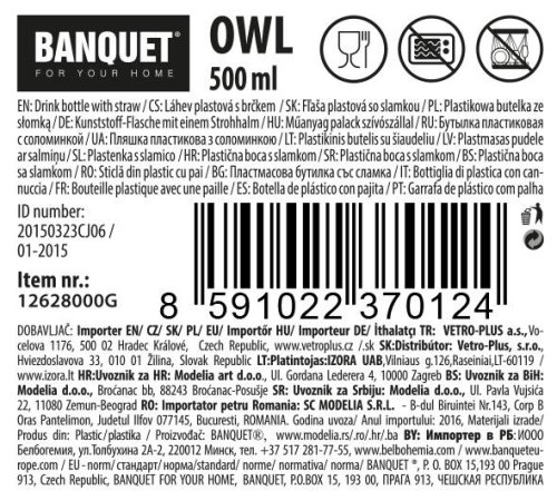 Láhev na pití 500 ml, s brčkem, SOVA PH ZE.
