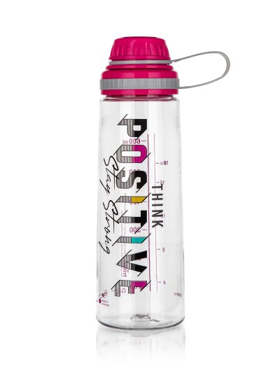 objem: 750 ml průměr: 7 cm výška: 25 cm materiál: plast barva: transparentní, růžový potisk