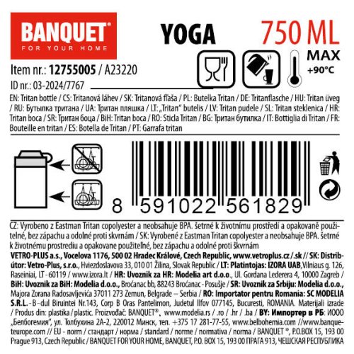Láhev na pití 750 ml, YOGA New, tritan RŮŽ.