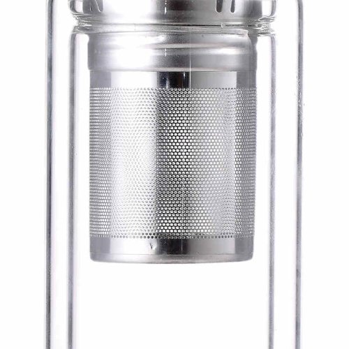 přenosná lahev na vodu, limonádu i čaj z borosilikátového skla- toto žáruvzdorné sklo dobře snáší studené i teplé nápoje a jejich teplotu udržuje mnohem lépe než plast- lahev má navíc dvojitou stěnu a teplotu nápoje tak dokáže udržet i 4 až 8 hodin- termolahve z borosilikátového skla jsou samozřejmě o dost zdravější než plastové- spolehlivé uzavření díky šroubovacímu víčku z bambusového dřeva- víčko má silikonové těsnění, láhev tak neprotéká v žádné poloze- díky velkému hrdlu jednoduše přidáte ovoce, led i bylinky do Vašeho oblíbeného nápoje- nerezové odnímatelné sítko Vám luhování surovin významně usnadní- snadné čištění, vhodné do myčky nádobí- objem: 0,35 litru