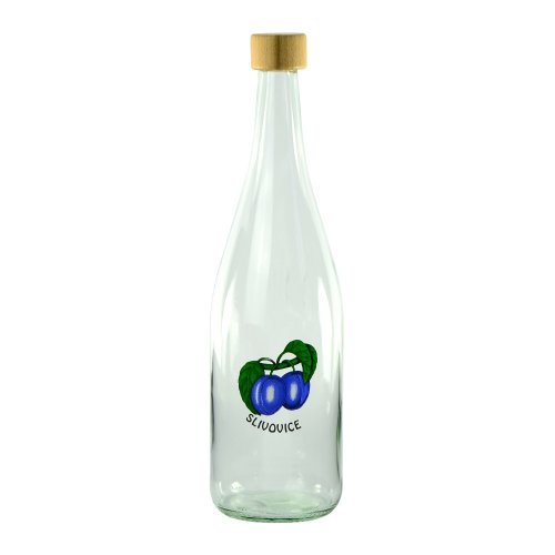 Skleněná láhev Weinschleg s dekorem švestka slivovice je ideální na destiláty, včetně dřevěné závitové zátky. Objem 1000 ml, výška včetně dřevěné zátky je 31 cm. Český výrobce. EAN 8590504029307