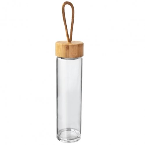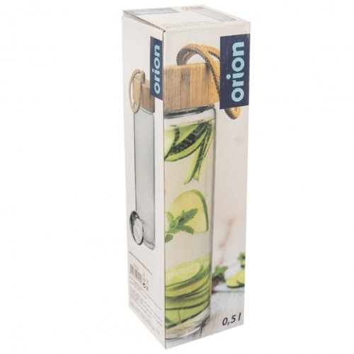 Láhev s víčkem a s jemným sítkem. Využijete ji na sport, na výlet, do školy a klidně i doma. Nápoj můžete ochutit čerstvým ovocem nebo bylinkami. Díky sítku vám ale nic z toho nebude při pití překážet v ústech, sítko totiž udrží pevné části nápoje bezpečně v láhvi. Víčko na závit se silikonovým těsněním zabrání rozlití nápoje, praktické textilní poutko umožní pohodlné přenášení a zavěšení. Materiál borosilikátové sklo (do 100 °C), bambusové dřevo, nerezová ocel, silikonové těsnění. Objem 0.5 litru, průměr 6 cm, výška 24 cm. Lze mýt v myčce na nádobí (bez dřevěného víčka). EAN 8592381175658