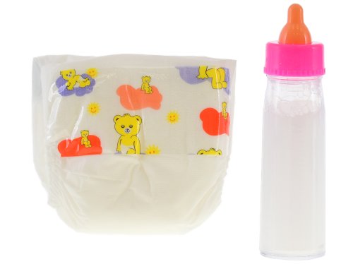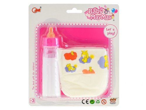 Lahvička s mlékem a plena jsou skvělými doplňky pro vaše panenky. Lahvička má velikost 13,5 cm. Vhodné pro děti od 3 let.