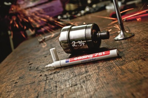 • Speciální popisovač edding 751 s permanentním lakovým inkoustem má vysoce krycí vlastnosti a umožní psaní i na tmavé a transparentní povrchy